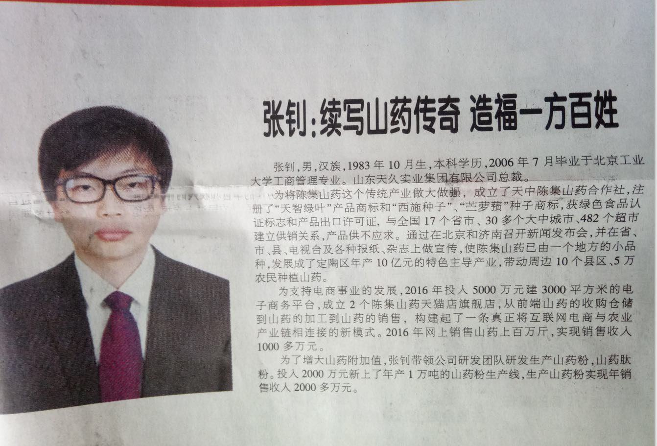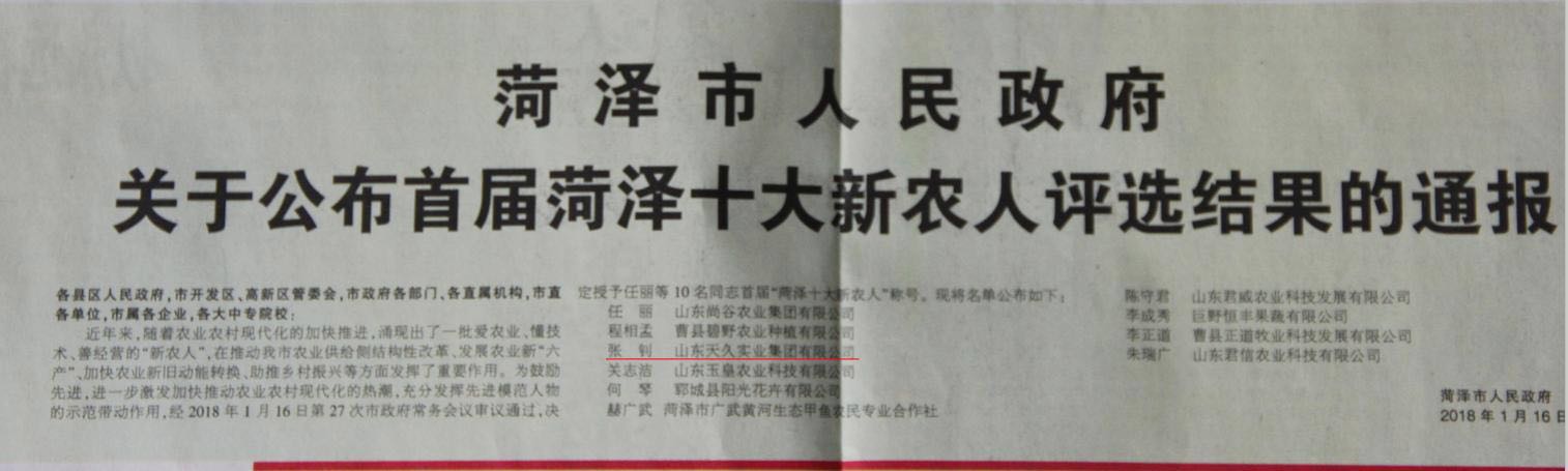 天久集團總裁張钊被市(shì)政府評為(wèi)首屆十佳“新農(nóng)人(r én)”